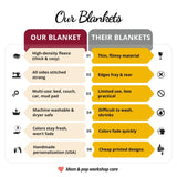 This personalized fleece and Sherpa pet blanket is more than a mat; it’s a thoughtful keepsake and a premium handmade gift for any pet lover. Each piece is ready to provide comfort and warmth for your pet.