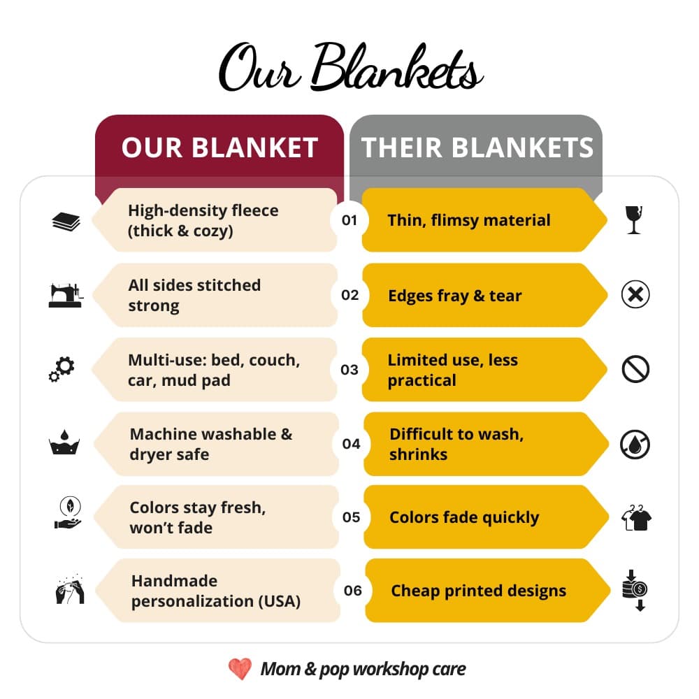 The custom double-sided mat, crafted with soft polar fleece on one side and fluffy Sherpa on the other. Each blanket is engraved with your pet’s name, icon, or breed-specific illustration, making it a truly personal accessory for dogs and cats. The engraving is permanent, not printed, ensuring the design never fades or peels. This cozy mat is handmade with care in our U.S. workshop and designed to look elegant in any home.